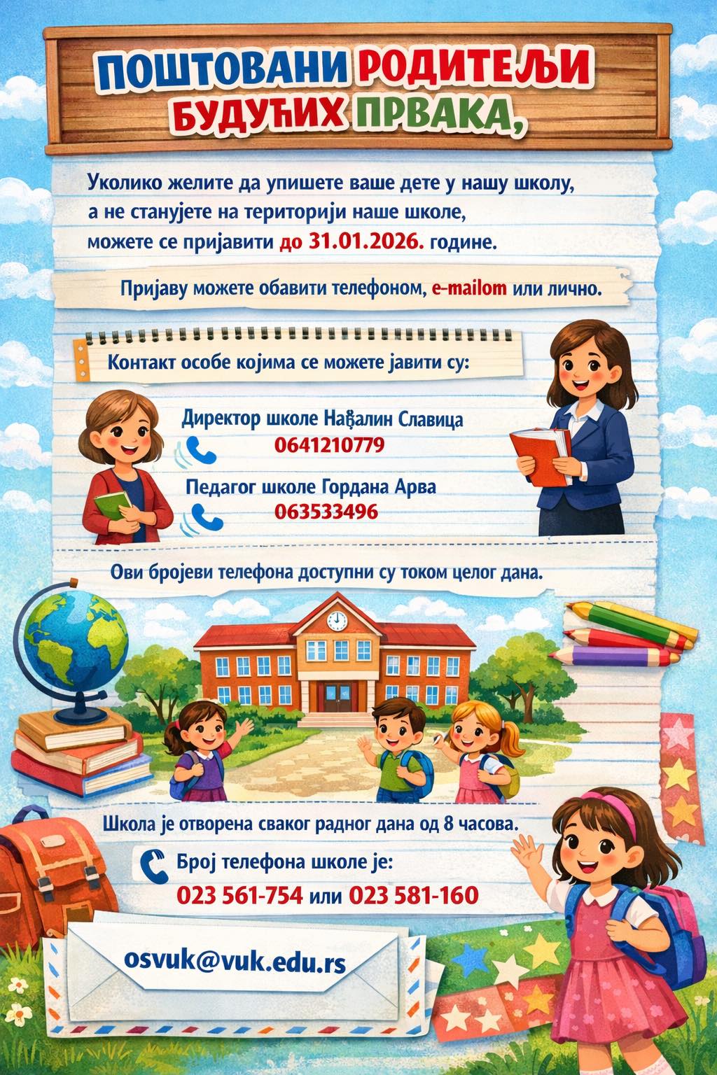 Понедељак - петак: 07:00-19:00 Субота: опционо Недеља: школа не ради